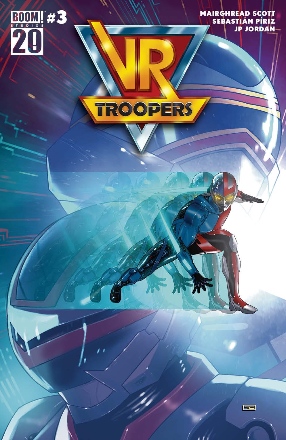 Hello there Heroes, Boom! Studios has sent us the latest issue of VR Troopers to review! Currently, we are on the third issue of this mini-series, and Grimlord has finally appeared to conquer “our” reality. However, only Kaitlyn knows Grimlord is the mastermind to this wild plot, as she is his prisoner. So, we must hope that Kaitlin can break out, or that the other Troopers come to her rescue. Also, we are going to change things up by discussing the characters and the situations they find themselves in. Anyway, let us ‘Trooper Transform’ and jump into this review for VR Troopers #3!