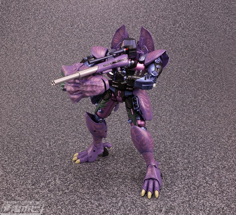 The figure will include his rifle, blast effect, two alternate face parts, a toothbrush (as seen in the episode “, Before the Storm”), and a display stand. The figure will also feature voice clips as well as removable beast mode kibble.