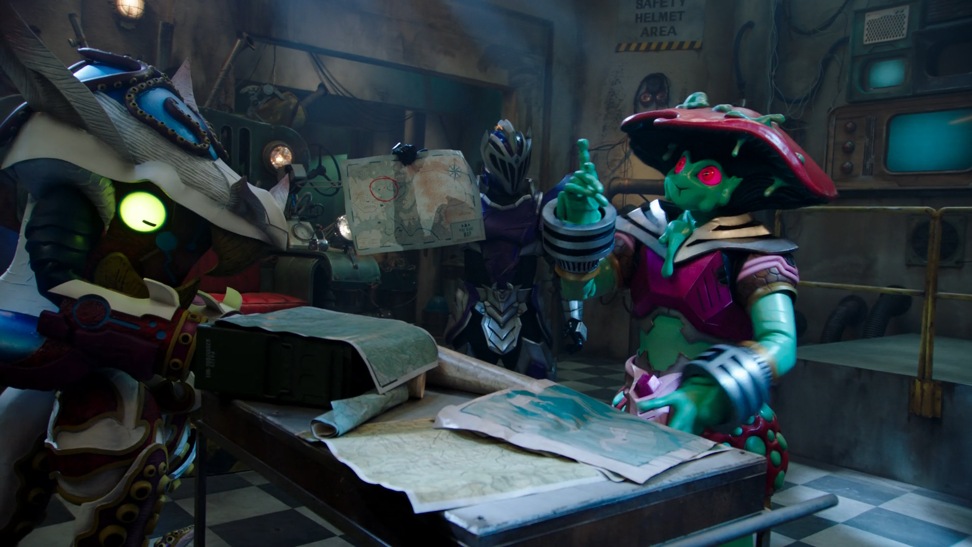 Now, continuing with the episode, at Area 62, Void Knight and company stumble upon the location of the missing Zords. They then decide the best option than taking control of them is to pull a Divatox and blow them up. Also, Void Knight plans to use Brineblast as a distraction, so Boomtower can plant and detonate the bomb successfully. Furthermore, Mucus wants to help too, but Void Knight exclaims “Here’s an important job, keep your mouth shut!” Yet, Mucus eventually does help with this plan, so that is ironic.