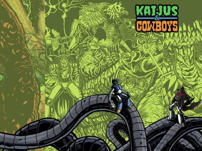 Launched in 2021 "Kaijus and Cowboys" is a comic set on an alien world that is being settled by a group of robots. Unfortunately for the robots, the planet is infested with giant kaiju monsters that constantly rampage through the settlement towns and destroy everything they can find...
